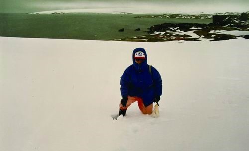 1993年1月,劉嘉麒在南極長(zhǎng)城站附近的雪地里行走。受訪者供圖