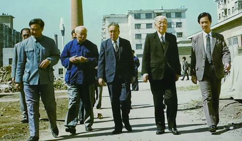 1987年,劉壽榮(左一)、師昌緒(左二)、武衡(左三)、嚴(yán)濟慈(右二)等考察中國科學(xué)院金屬腐蝕與防護(hù)研究所。