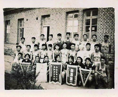 上世紀50年代,胡敦欣(二排右四)參加即墨中學運動會合影。