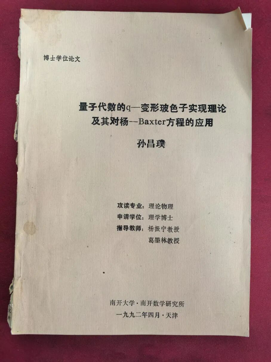 20世紀90年代,孫昌璞來到美國紐約州立大學石溪分校,在楊振寧指導下開展博士后研究。楊振寧一生只收過寥寥幾名學生,他作為指導老師署名的博士生論文,大概不會超過10篇,其中一篇就是孫昌璞的。