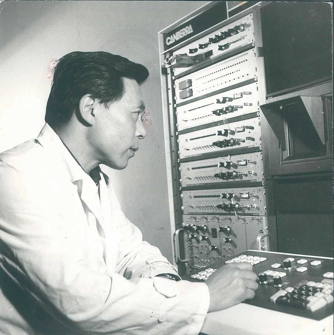 1964年,歐陽自遠(yuǎn)用伽馬能譜儀測定大氣層樣品的放射性物質(zhì)沉降。