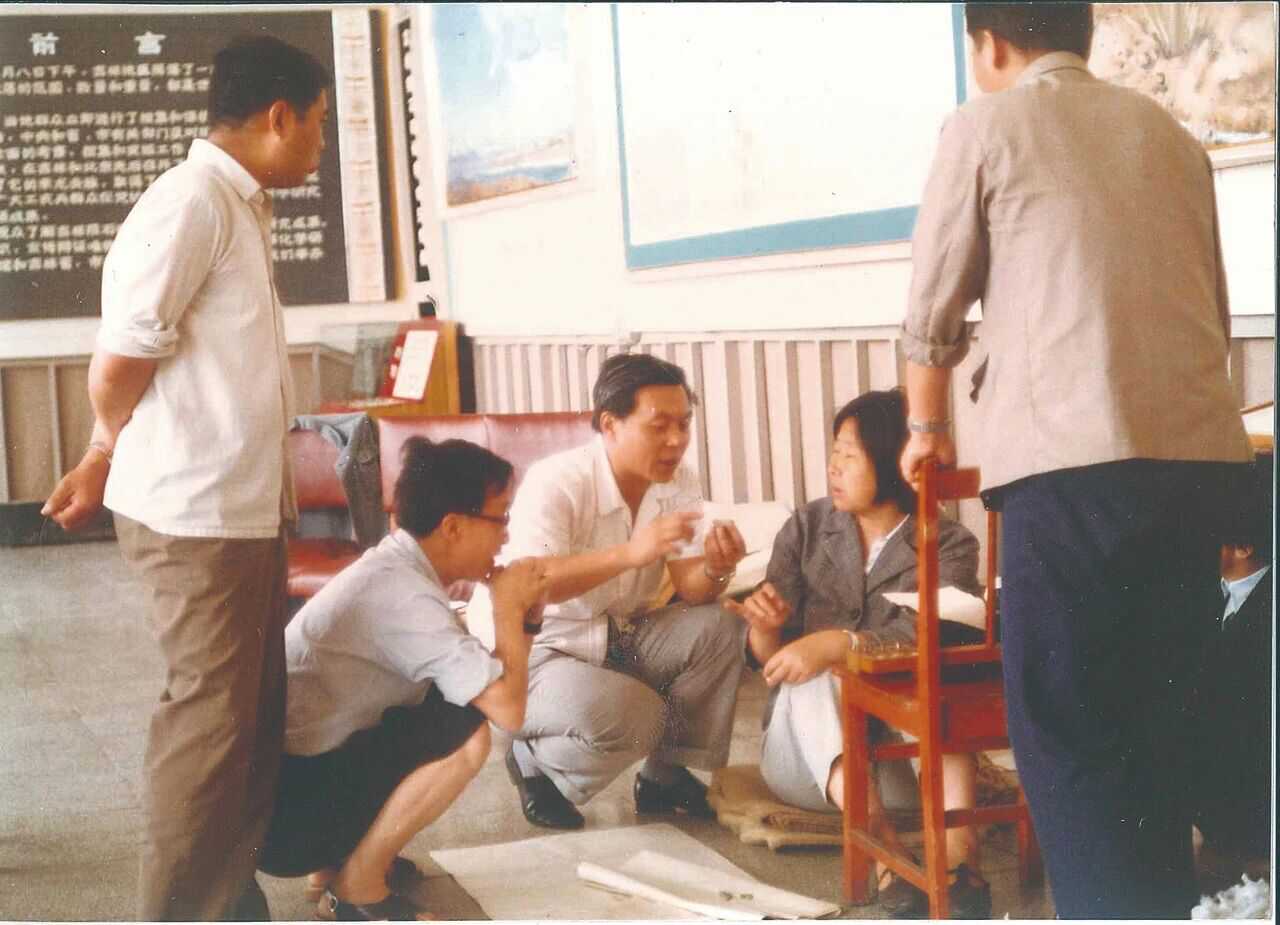 1980年,歐陽自遠(yuǎn)(中)和中德隕石聯(lián)合研究小組成員討論吉林隕石巖芯取樣的相關(guān)問題。