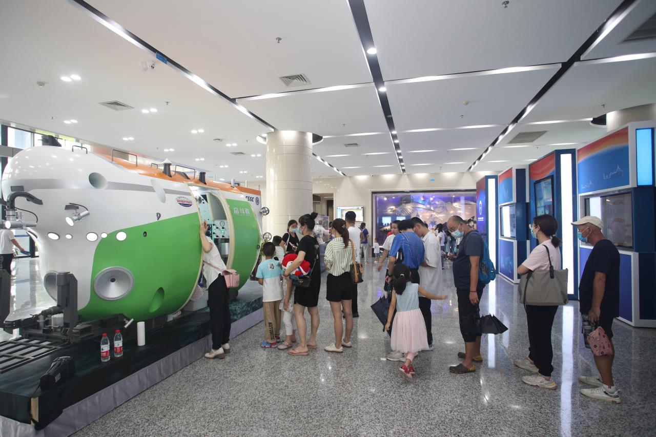 公眾排隊打卡“奮斗者”號載人潛水器模型