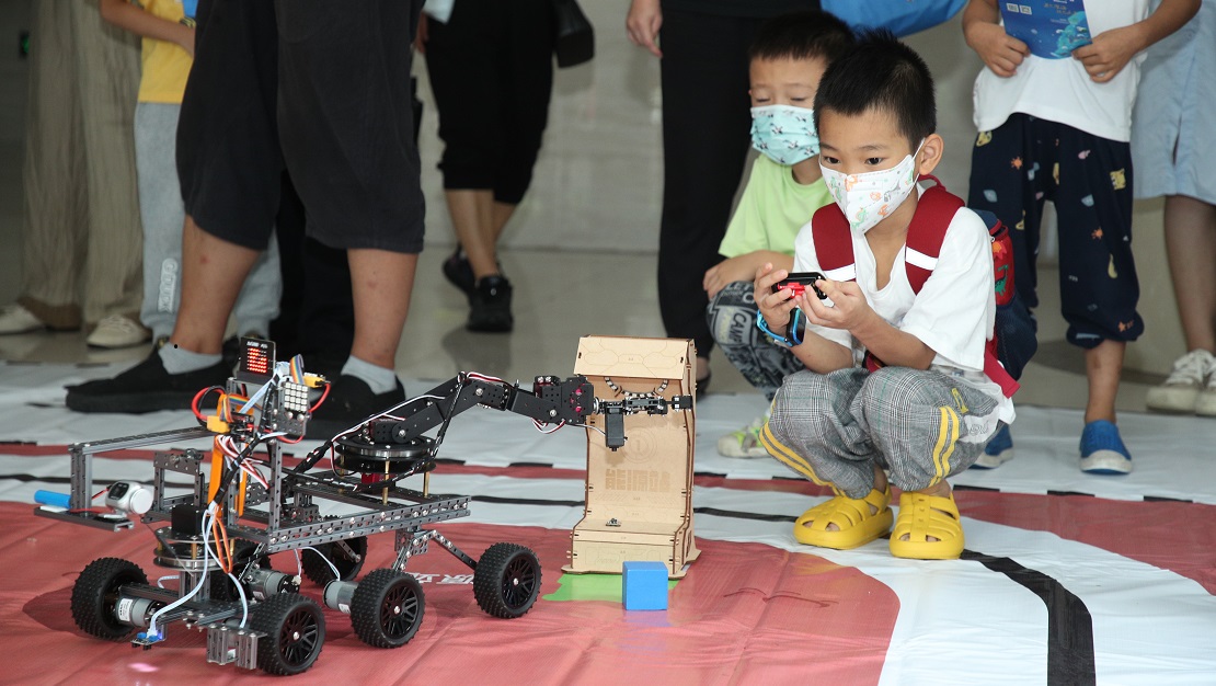 公眾體驗使用遙控系統(tǒng)駕駛“深海采礦機器人”