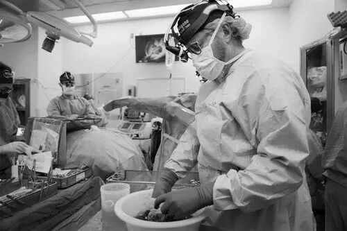 2023年7月,Robert Montgomery在紐約準備將豬腎移植到一名腦死亡男子體內。圖片來源:Shelby Lum