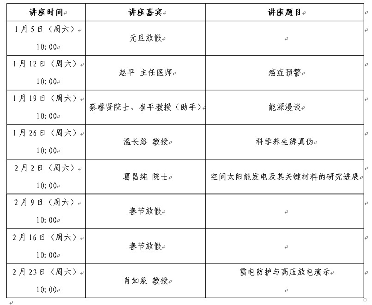 “科學講壇”講座預告(2013年1月、2月)