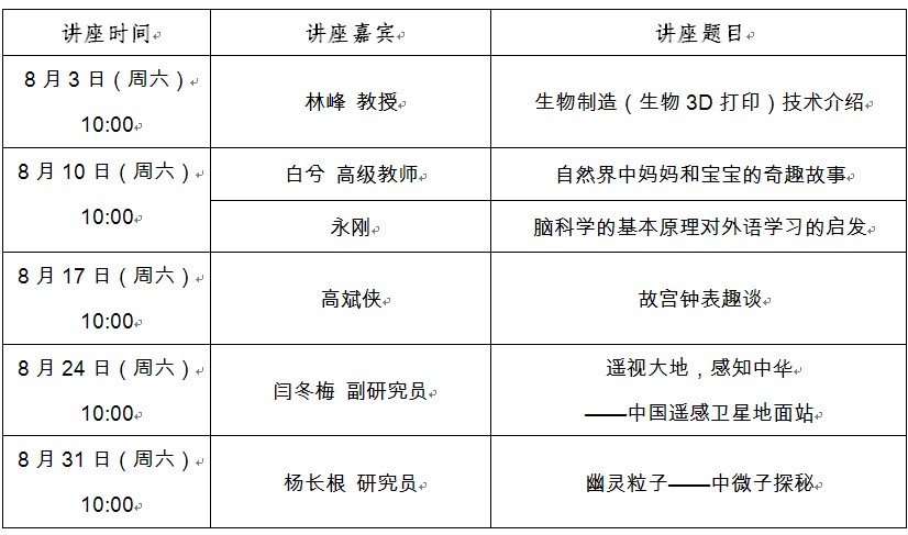 “科學講壇”講座預告(2013年8月)