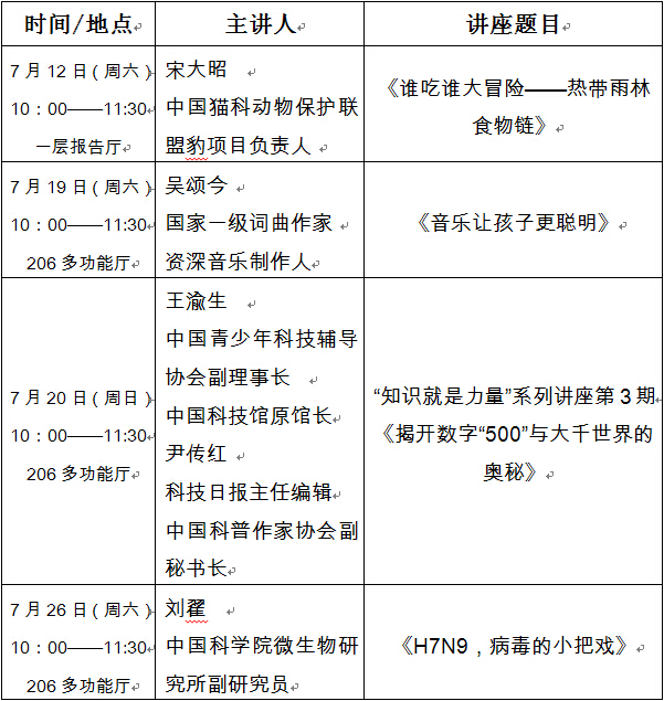 “科學(xué)講壇”預(yù)告(2014年7月)