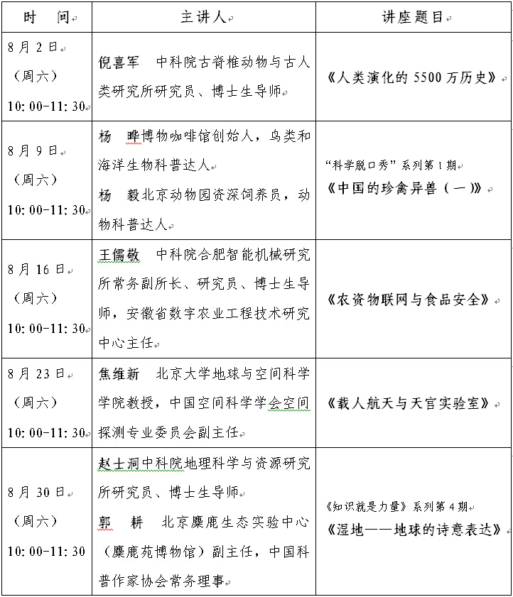 “科學講壇”預告(2014年8月)