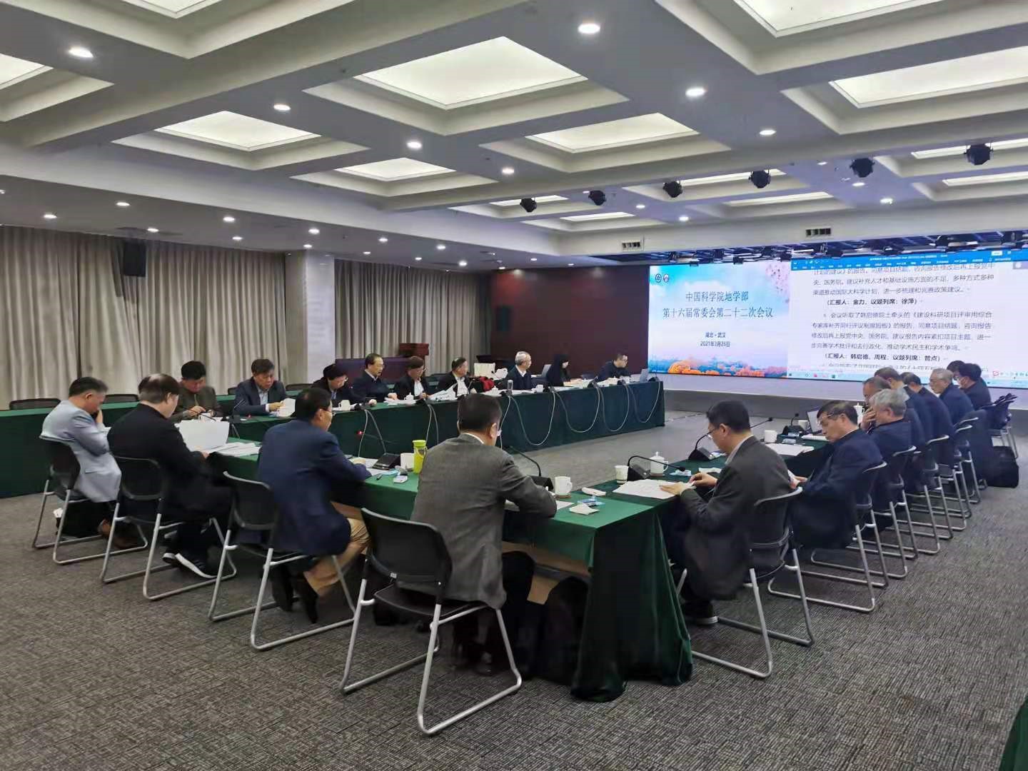 2021年3月26日,中國科學院地學部常委會在湖北武漢召開十六屆二十二次會議,研究部署院士大會、學部咨詢評議、學科前沿戰略研究等工作。傅伯杰主任主持會議,18位常委出席,陳颙等9位院士專家、學部局王篤金局長、蘇榮輝副局長等列席。