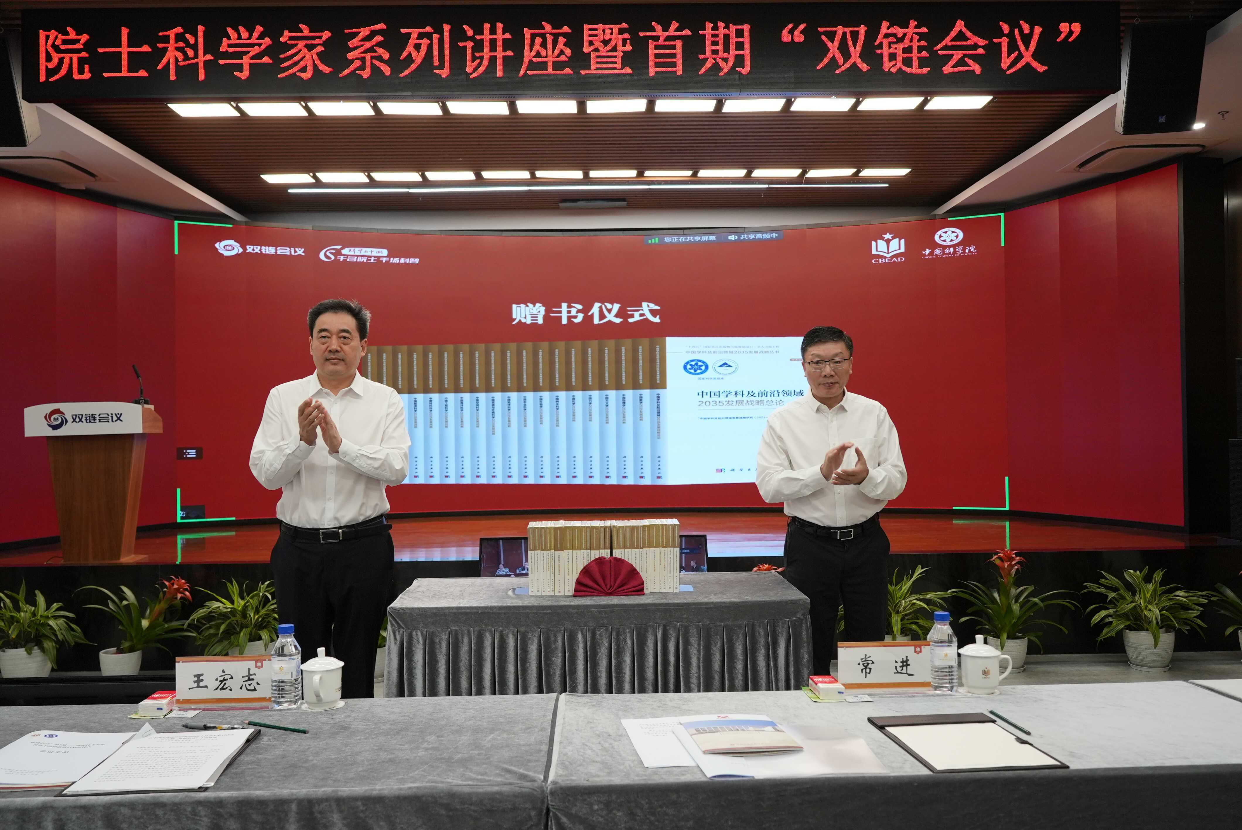 會前,中國科學院副院長常進向國務院國資委贈送了《中國學科及前沿領域2035發展戰略》叢書。