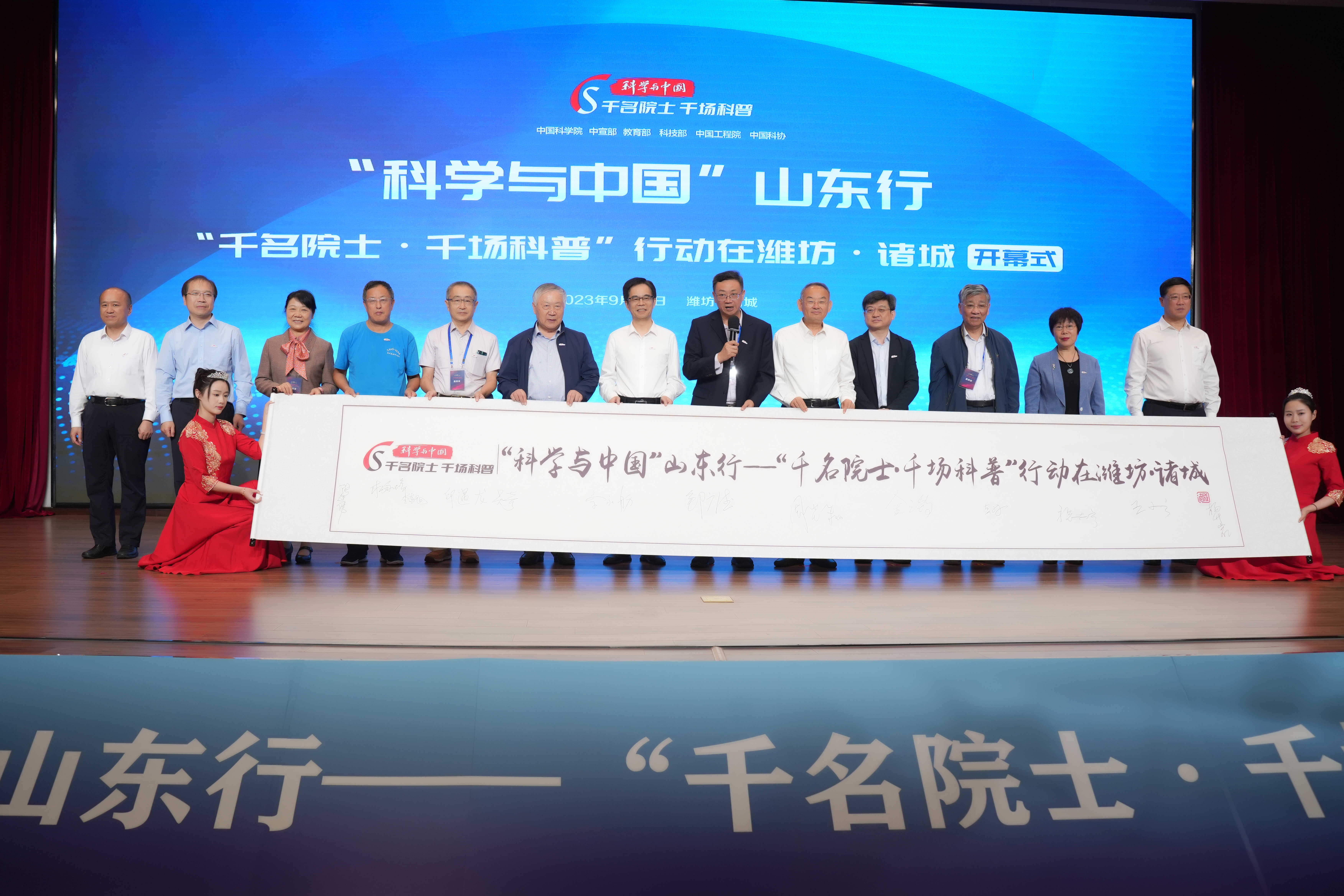 中國科學院院士、中國科學院學部科學普及與教育工作委員會副主任周忠和主持啟動儀式,中國科學院學部工作局副局長楊永峰、山東省科學技術協會黨組書記、副主席鄒廣德,山東省委組織部副部長龔文東,濰坊市委常委、副市長、市政府黨組副書記楊升巖,諸城市委書記張建偉分別致辭,與會嘉賓共同啟動“科學與中國”山東行——“千名院士·千場科普”行動在濰坊·諸城。