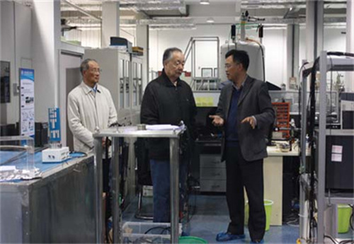 為了讓霍裕平院士詳細了解今天強磁場技術和科學的發展,匡光力詳細介紹所到之處的設備儀器,特別詳細地介紹了自主研制的強磁場裝置以及自主研發幾個獨特的實驗系統。在介紹強磁場中心近40位研究員時,匡光力不無自豪地細述他們的來歷、目前承擔的重要任務,以及他們對強磁場中心發展作出的重要貢獻。在強磁場實驗裝置大廳,霍裕平院士聽高秉鈞介紹水冷磁體研制情況,不由得笑出聲來:“想當初我們一起討論水冷磁體的研制……,今天你們終于做成了!”