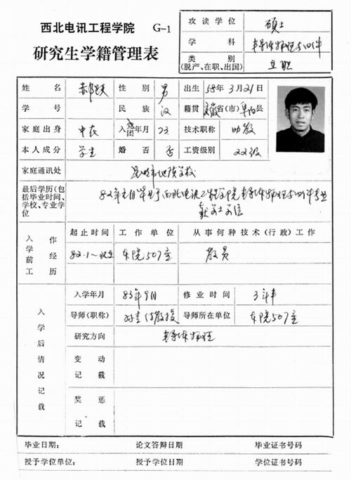 ▲郝躍院士讀研期間的學(xué)籍管理表