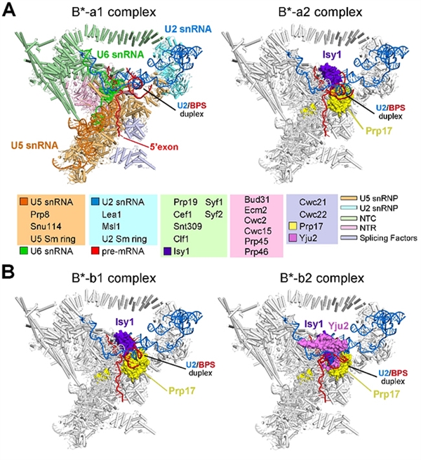 施一公研究組發文報道酵母B*剪接體電鏡結構 捕獲最后一個剪接體基本狀態