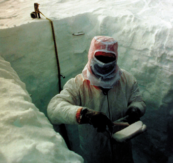 秦大河在南極內(nèi)陸(南緯86度)2米雪坑內(nèi)采樣(圖片來(lái)源:中國(guó)科學(xué)院院士文庫(kù))